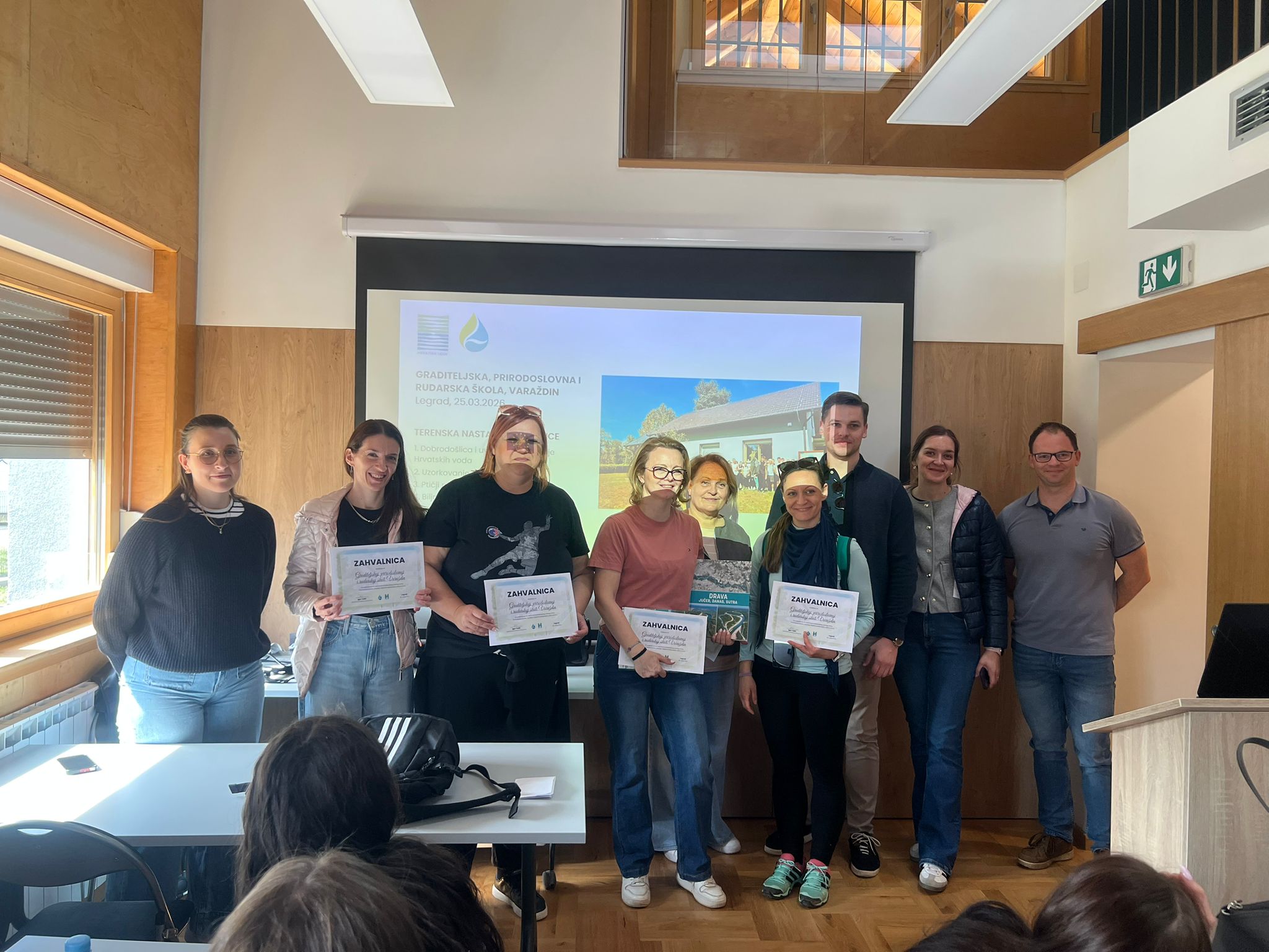 U srijedu, 25. ožujka 2026. godine, u Centru su boravili učenici 1. B, 2. B, 3. B i 4. B razreda Graditeljske, prirodoslovne i rudarske škole Varaždin, smjerova ekološki i kemijski tehničar. Kroz uvodno stručno predavanje i nekoliko praktičnih radionica na otvorenom učenici su imali priliku upoznati hidrološke i prirodne značajke rijeke Drave, njezinu biološku raznolikost te važnost očuvanja riječnih ekosustava.